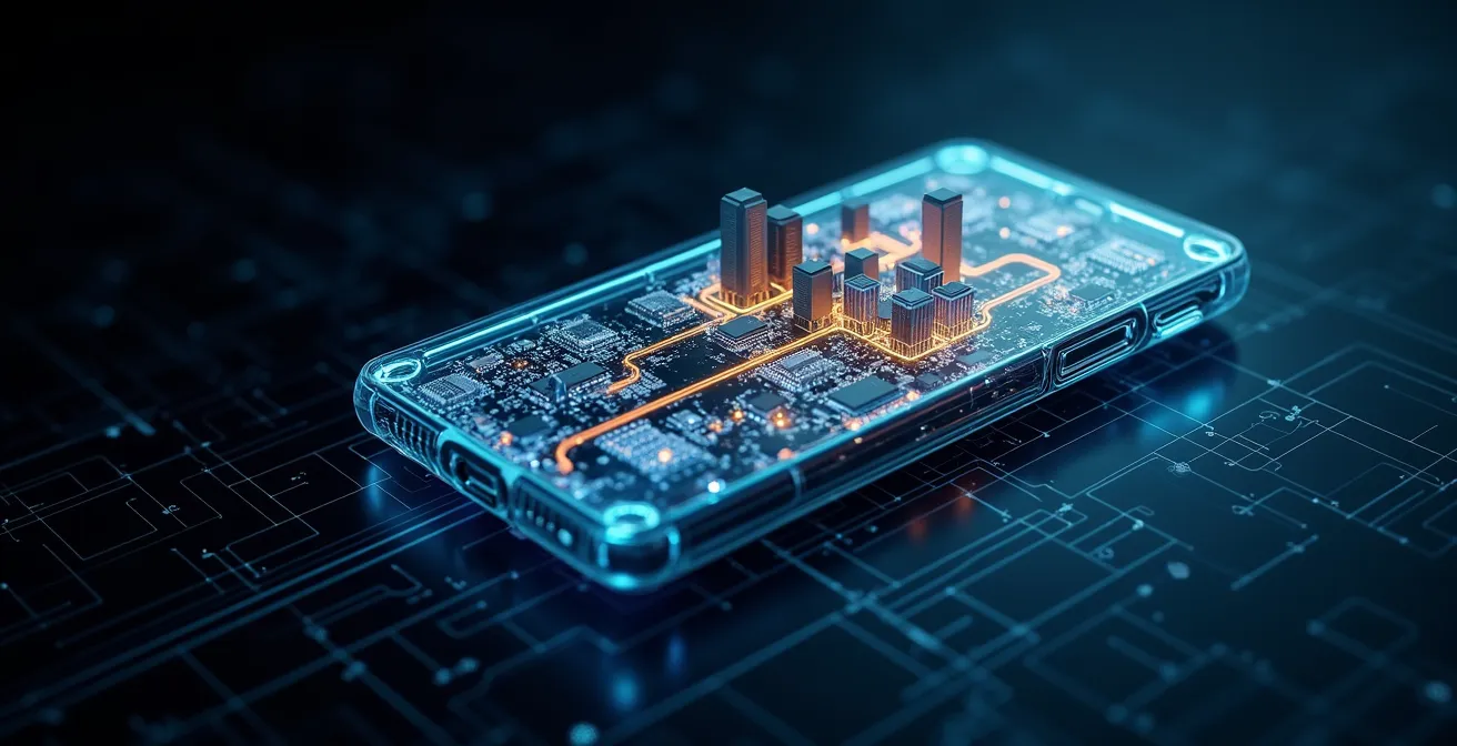 El enemigo número uno de la longevidad de tu móvil no son las caídas, es el calor. Un procesador potente genera una cantidad ingente de calor, y si la arquitectura interna no está diseñada para evacuarlo eficientemente, se produce un fenómeno llamado estrés térmico. Esto no solo provoca el conocido «thermal throttling» (la reducción drástica del rendimiento para evitar sobrecalentamiento), sino que degrada físicamente los componentes internos de forma silenciosa e irreversible.